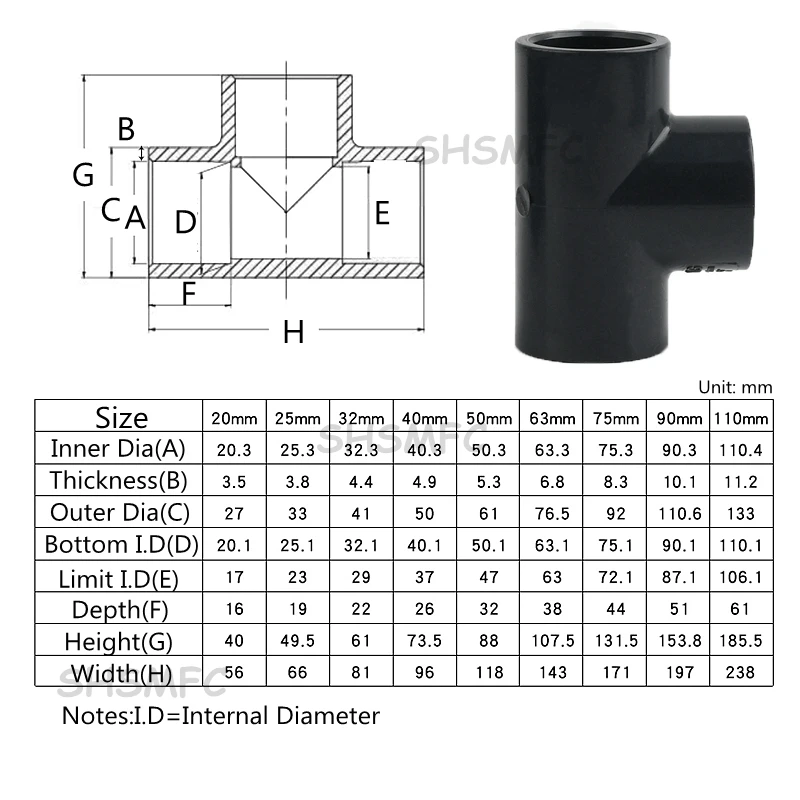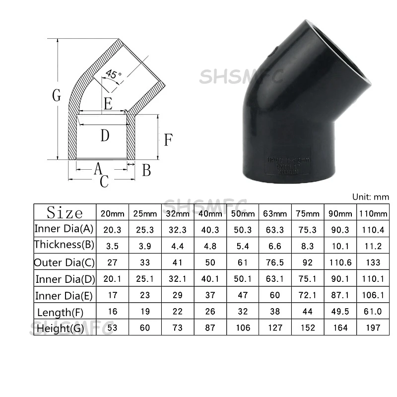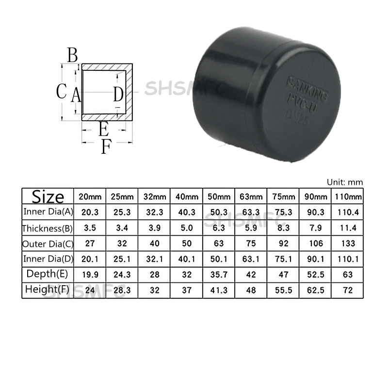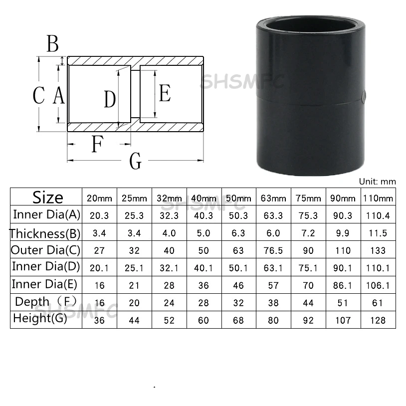 Tamanho do produto: 20mm 25mm 32mm 40mm 50mm 63mm