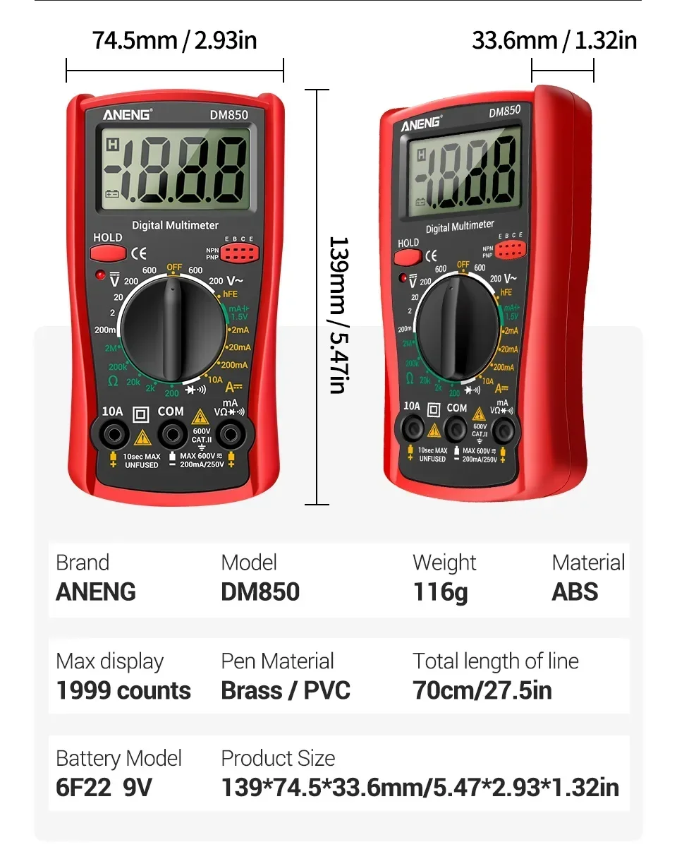 Número do modelo: ANENG DM850 Multimetro