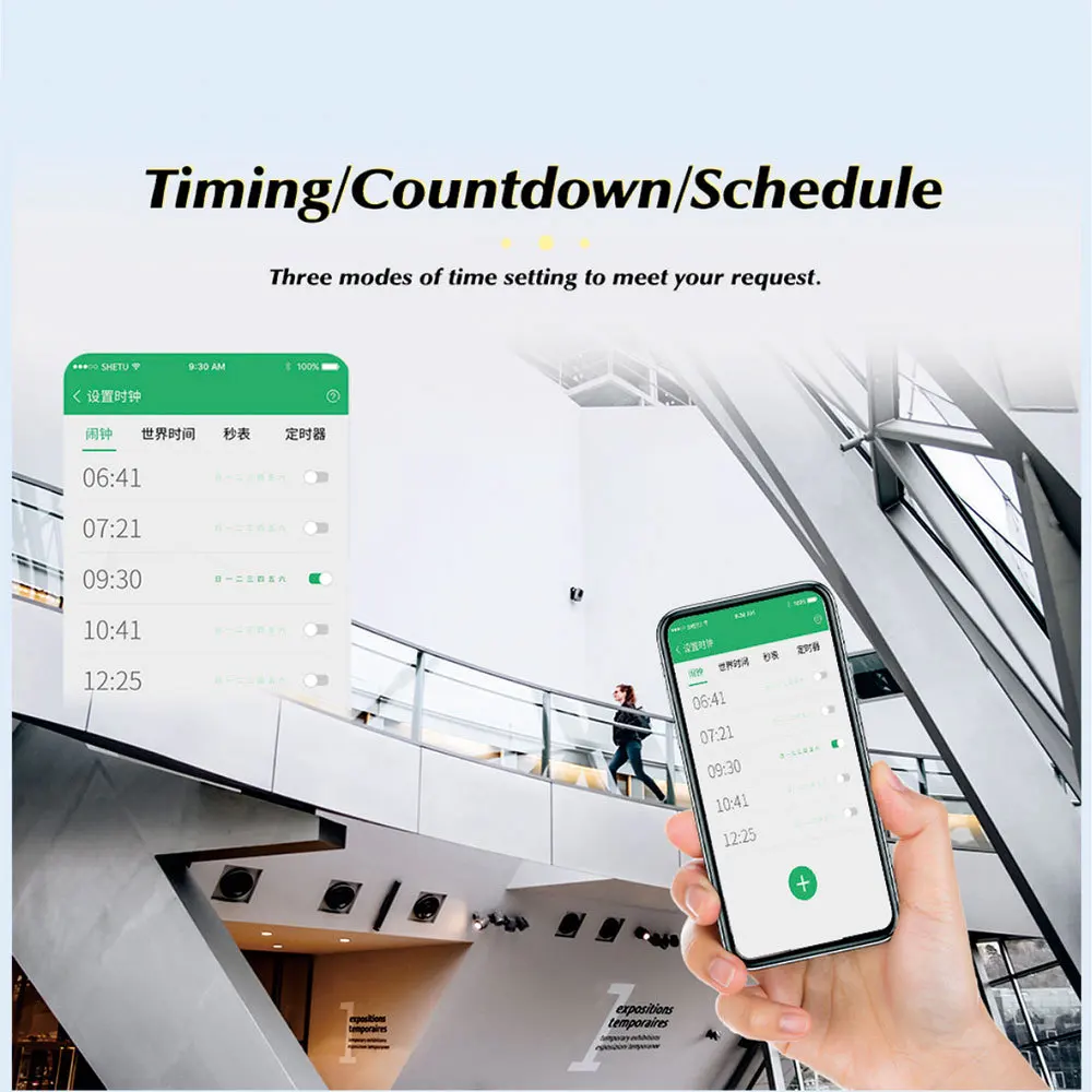 É fácil conectar o dispositivo ao seu smartphone ou tablet e controlar o plugue em qualquer lugar e a qualquer hora de acordo com suas necessidades por meio do aplicativo Smart Life ou do aplicativo Tuya Smart.Aproveite sua vida inteligente e conveniente, esteja você de férias/negócios ou em casa.