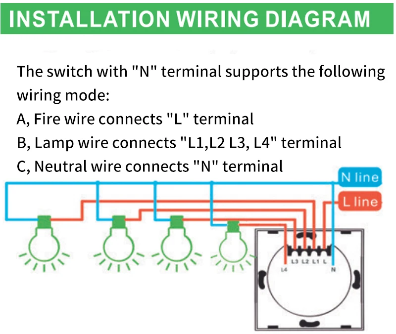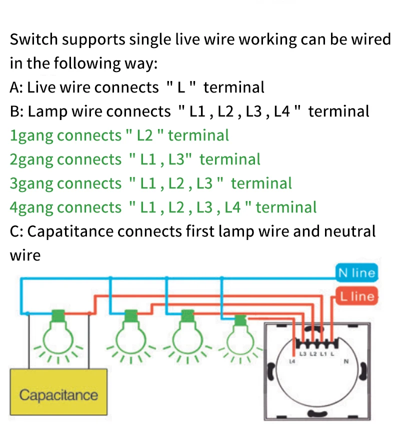 Método de fiação do interruptor: conecte à linha neutra ou instale o capacitor fornecido